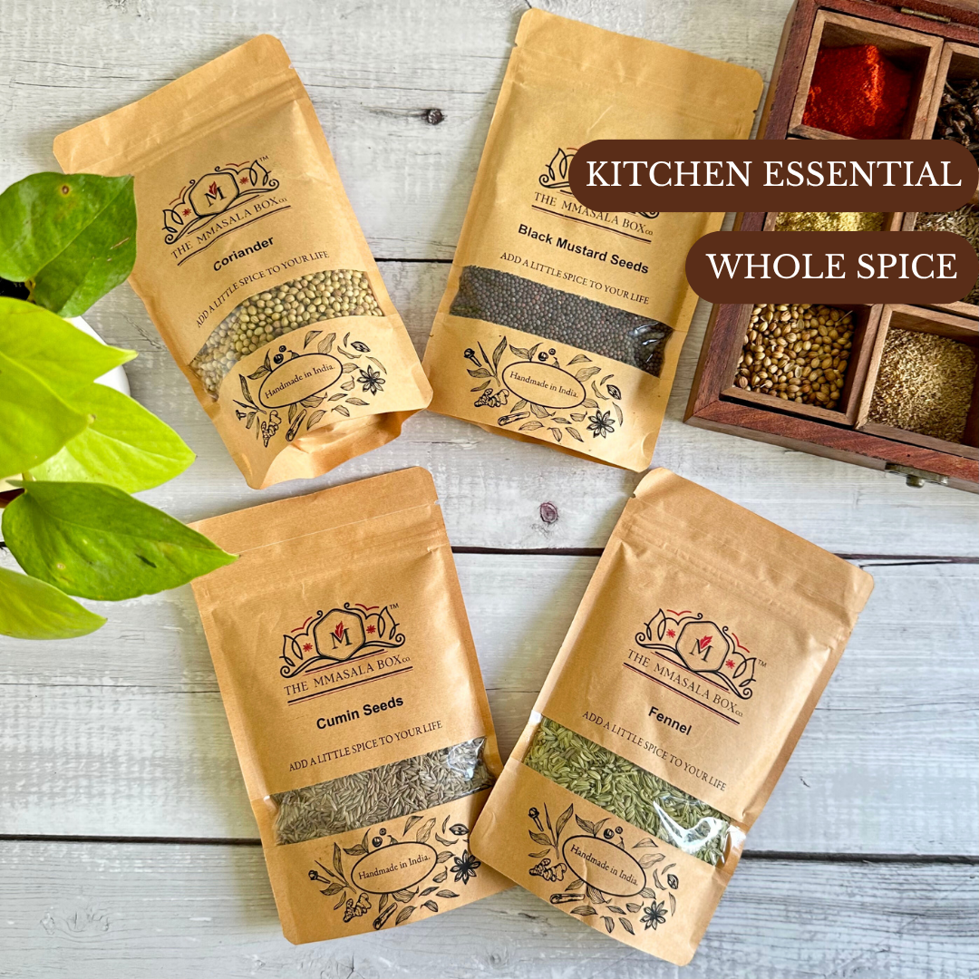 MMasala Box offers a blend comprising Cumin Seeds, Dhaniya Seeds, Mustard Seeds, and Fennel Seeds. This mix boasts earthy, aromatic, and mildly sweet flavors, perfect for enhancing dishes. From spicing up curries to seasoning various foods, it adds authentic taste, elevating culinary creations with vibrant flavors.